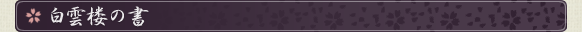 幕末の勝海舟・山岡鉄舟と共に三舟と称せられる高橋泥舟が揮毫したもの。高橋泥舟は、たびたび湯田中を訪れ、数多くの書を書き残しました。書風は、中国六朝時代の文字に新鮮味を求めたもので、現代においても「白雲楼」は泥舟流の最高の特徴のある作品です。